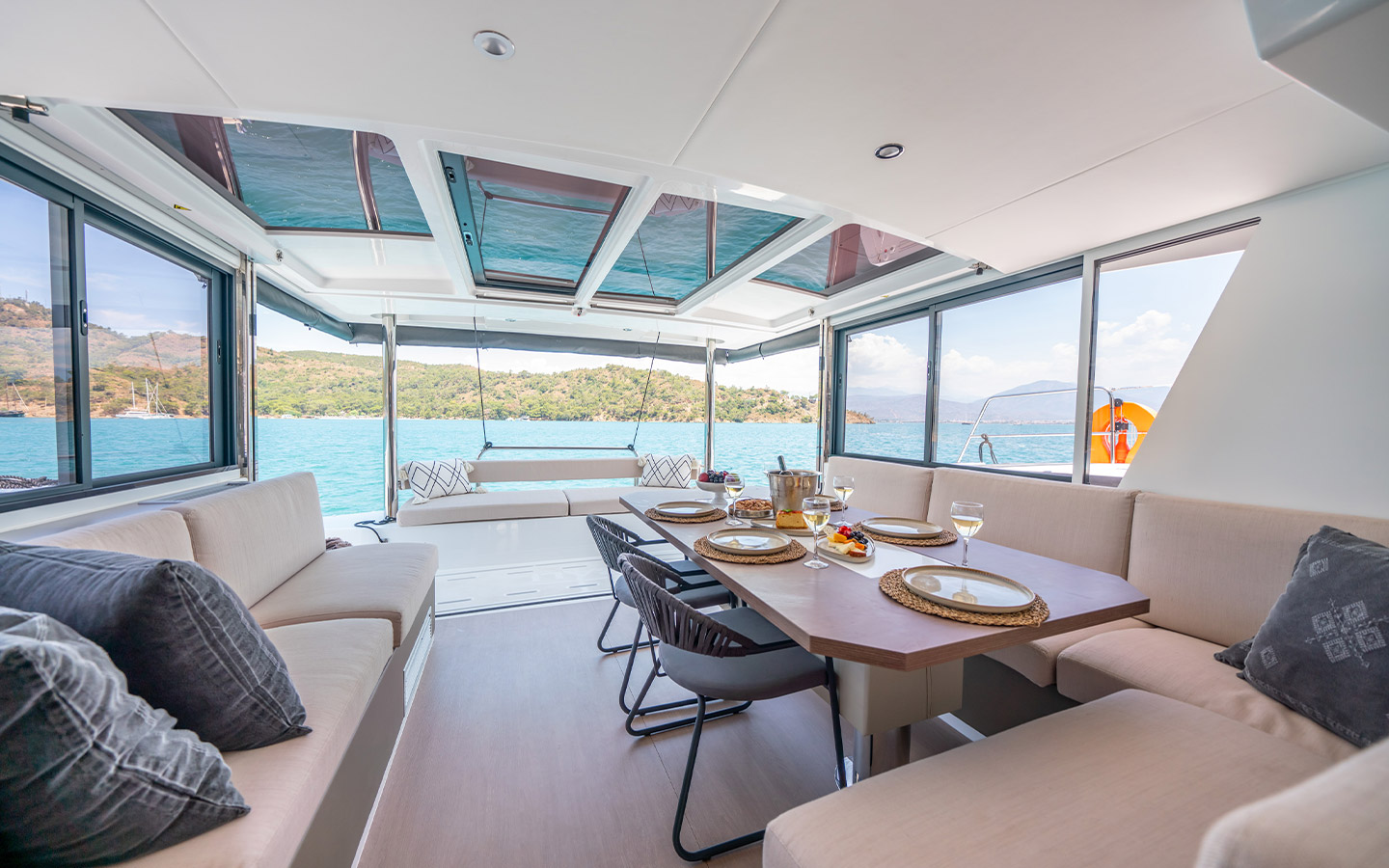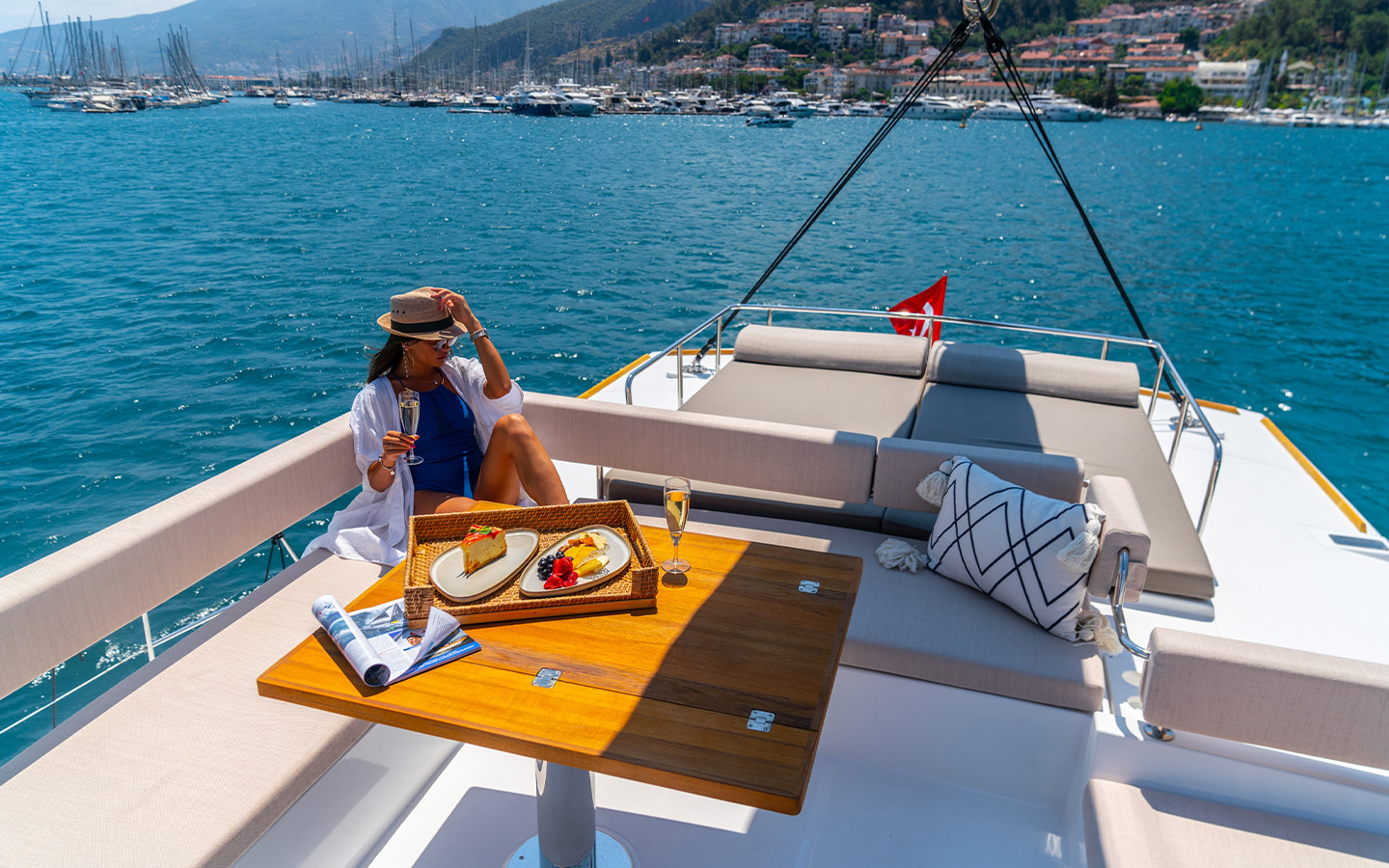 Zarafeti ve konforu bir araya getiren etkileyici bir katamaran. Geniş ve modern yaşam alanları, kusursuz tasarımı ile denizde unutulmaz bir deneyim sunar.